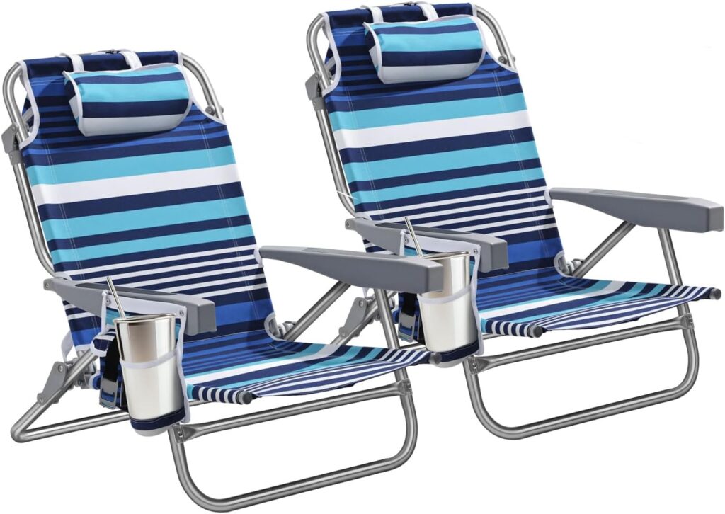 5-Position Aluminum Lay Flat Backpack Beach Chair 2 Pack