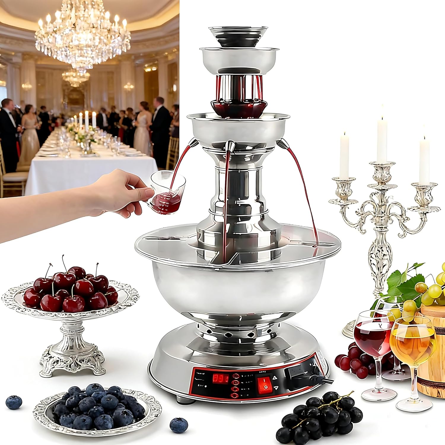 3-Tier Wine Fountain Machine – 3.5L Champagne & Wine Dispenser with 0-100° Temperature Control