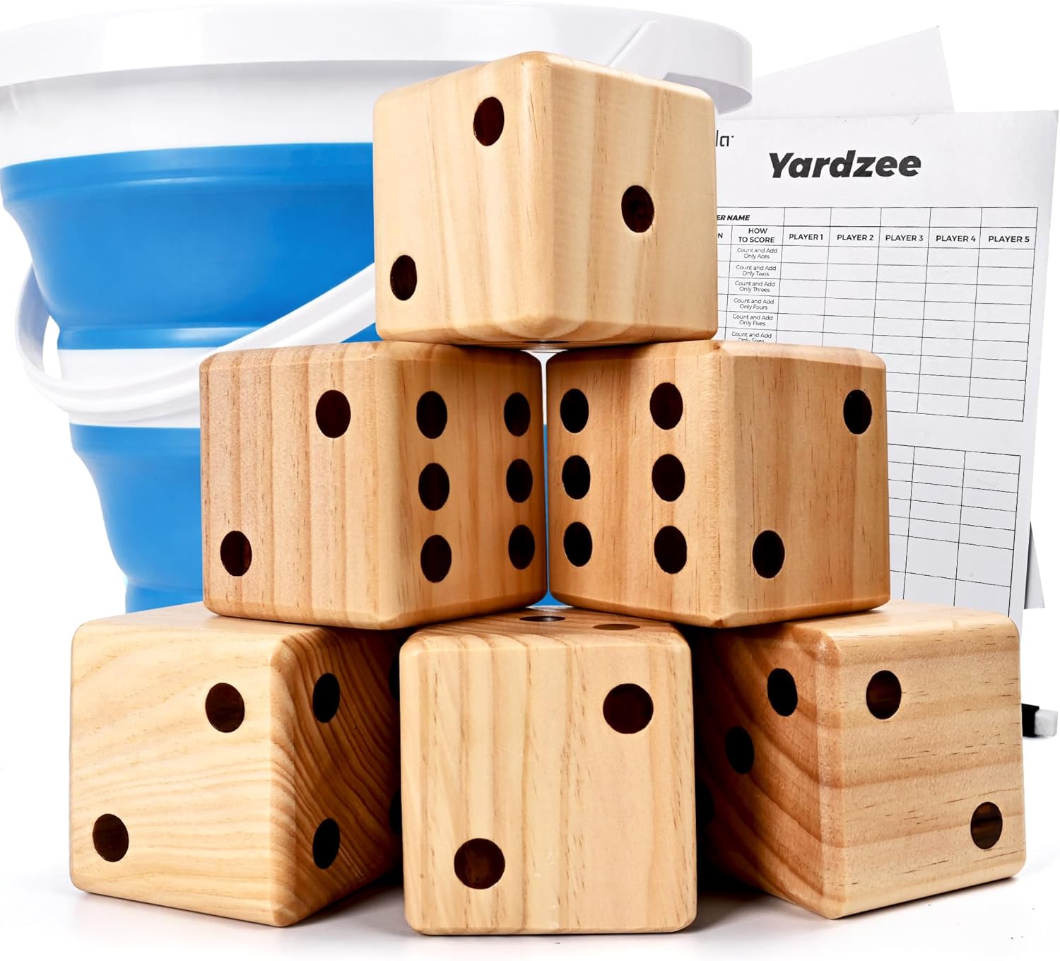 Giant wooden yard dice set provides 2 dry erase score sheets, the instructions are on the front side of the cards, and keep the score on the reverse side. And it come with a dry erase marker for reusable use