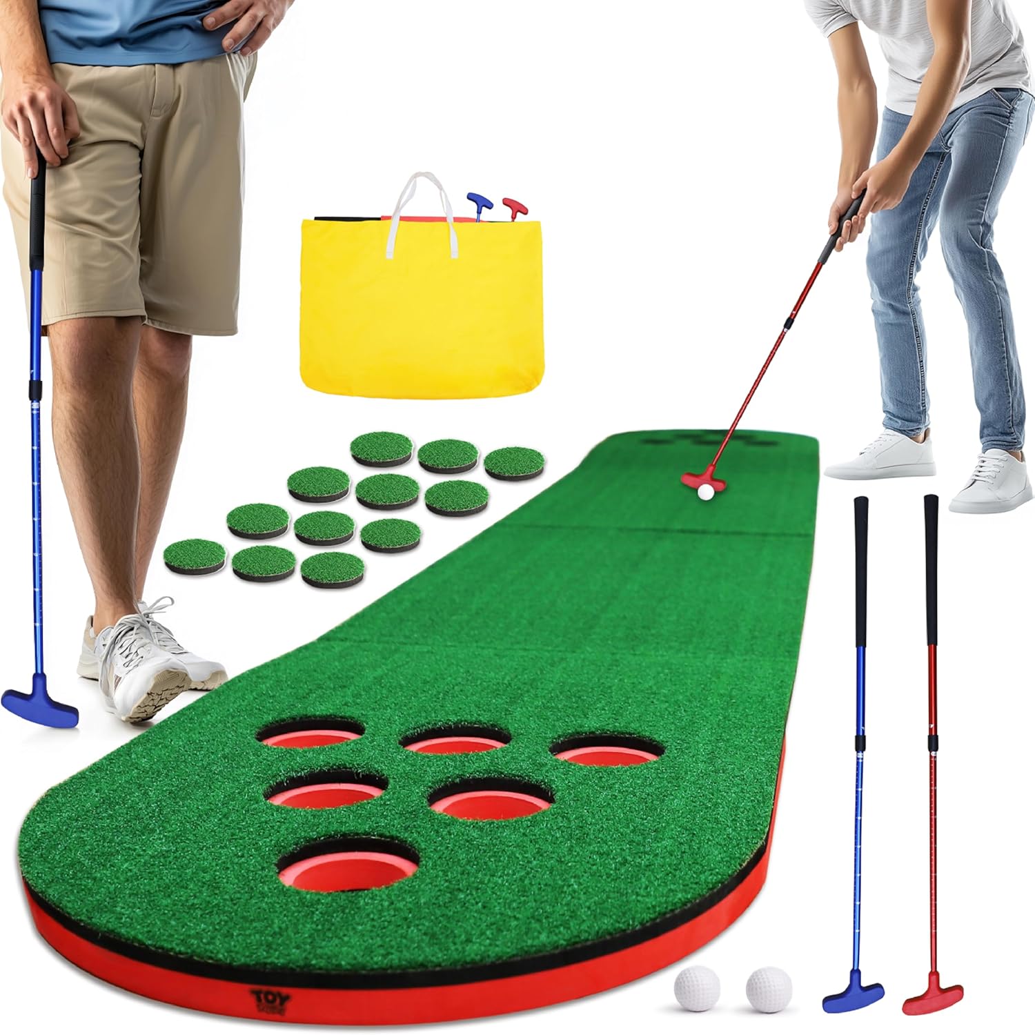 Mini Golf Putting Set: The Perfect Golf Tailgating Game or Backyard BBQ Party Game – Comes with 2 adjustable high-quality minature golf putters, 12 Cup Caps, and a convenient STORAGE BAG. It’s the perfect putting mat for indoors, turning any space into your own golf haven. Practice putting green indoor sessions have never been this complete!