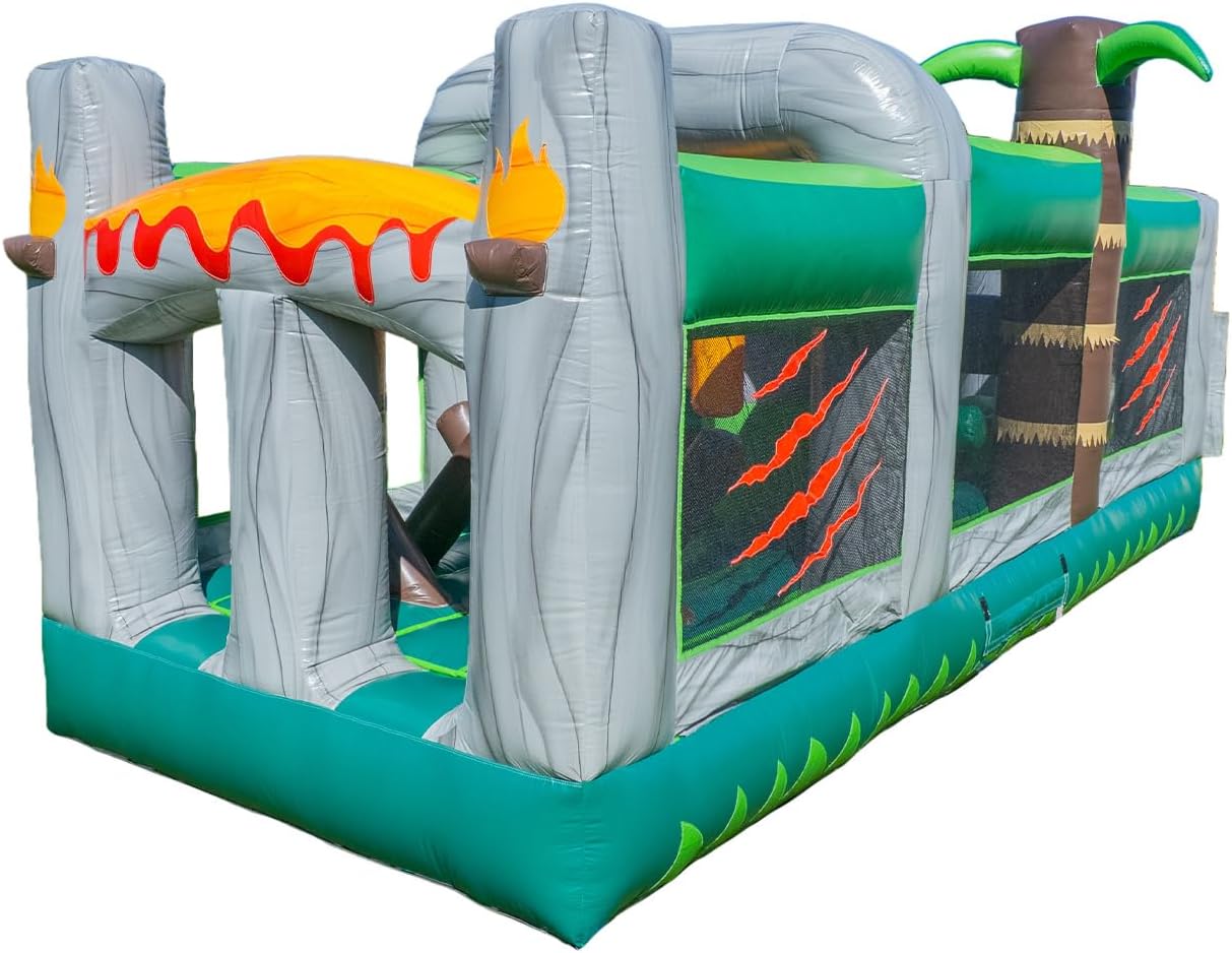 3-IN-1 DINOSAUR CHALLENGE & MODULAR CONNECTION DESIGN: Features a T-Rex dinosaur theme with integrated climbing walls, crawl-through tunnels, and sliding sections to encourage agility and coordination. It is a specialized seam system that allows this unit to connect seamlessly with the T-Rex 12’ Dual Lane Backload Water Slide (SKU: HKS-Trex12) to create an expansive 42ft prehistoric adventure park.