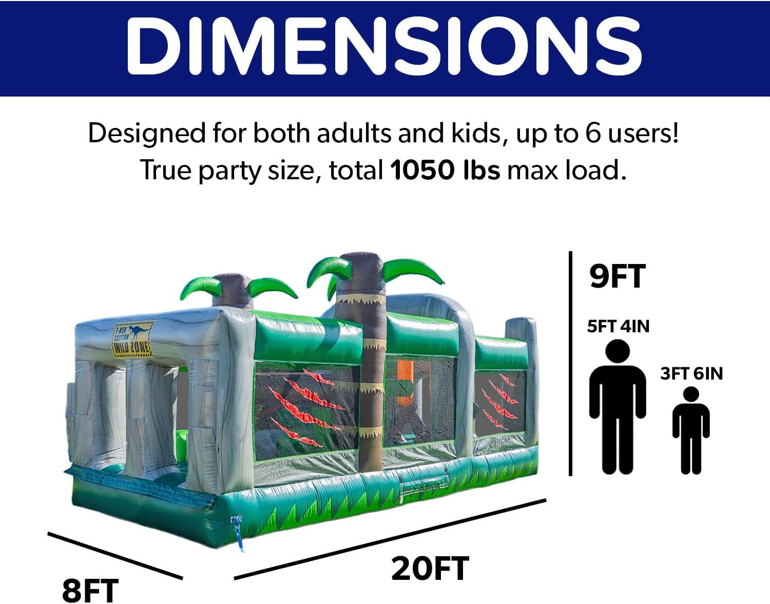 COMPACT 20′ x 8′ FOOTPRINT & MULTI-PLAYER CAPACITY: Measuring 20’L x 8’W X 9.6’H , this inflatable is designed to fit most residential backyards while providing a 9.6ft height that works for both indoor and outdoor events. Engineered to support up to 8 participants simultaneously with a maximum weight limit of 175lbs per user, making it ideal for high-traffic birthday parties and large family events.